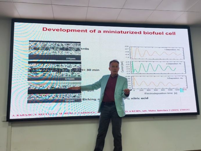 2025年11月4日至11日,法国波尔多大学教授、河南大学“外籍卓越人才”特聘教授Alexander Kuhn来访河南大学纳米科学与工程研究院,在此期间为研究院研究生讲授了一系列精彩纷呈的电化学课程,并与研究院师生开展了深入的学术交流。