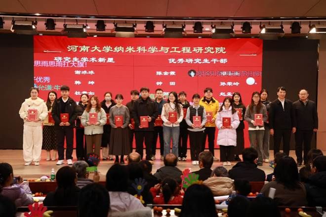 2025年12月27日,河南大学纳米科学与工程研究院2025年度表彰大会隆重举行。大会全面总结了过去一年研究院围绕学校发展大局和锚定“提质进位”的目标,在科研创新、人才培养、成果转化等方面取得的丰硕成果与宝贵经验。化学与分子科学学院党委书记常凤香、研究院主任赵伟教授、常务副主任张经纬教授、副主任张俨娜、副主任牛利永及各研究室主任、高层次人才代表和全体师生共同参会。大会由副主任史建武主持。